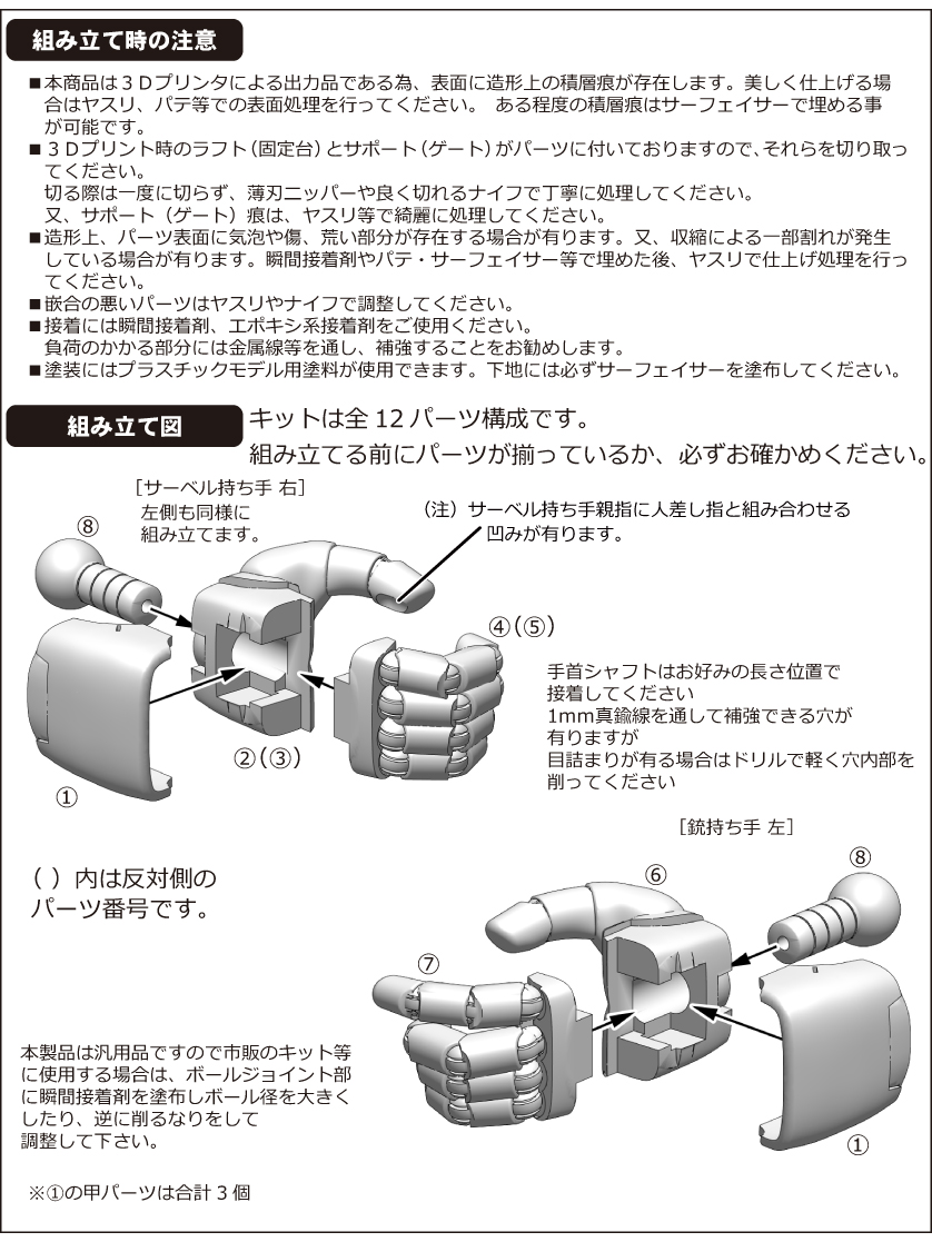 キット内容:サーベル持ち手(右・左)、銃持ち手(左)