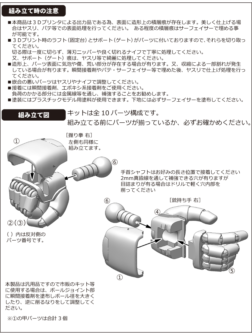 キット内容:握り拳(右・左)、銃持ち手(右)